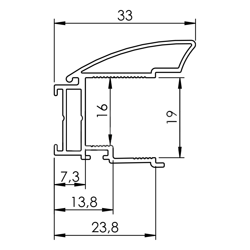 Służy do wykończenia skrzydła drzwi w zabudowie aluminiowej.